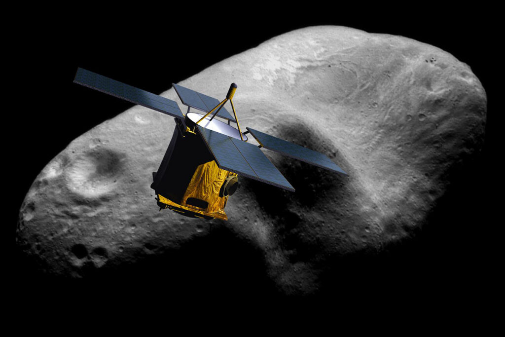 Feb. 12 — NASA’s NEAR (Near Earth Asteroid Rendezvous) Shoemaker probe becomes the first human-made object to land on an asteroid. The soft landing upon the asteroid Eros, some 355 million kilometers from Earth, was not part of the original mission, which simply called for Shoemaker to orbit the asteroid. Flight International, Feb. 20-26, 2001, p. 33.