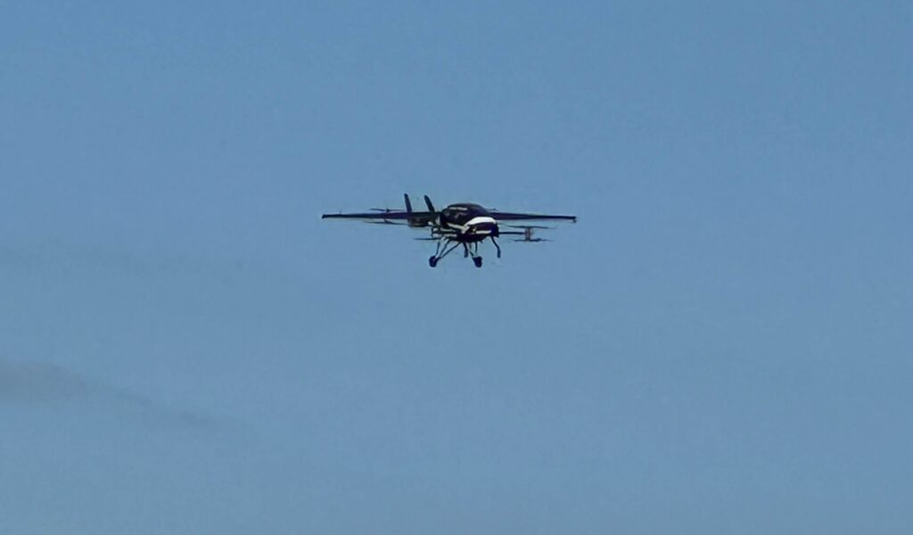 Eight rotors buzzed loudly to life as the aircraft’s nose reared up like a horse in preparation for takeoff from a field at Indiantown Airport. Once airborne, that noise soon quieted to a buzz, then a hum while the remotely piloted craft flew a circular pattern above the airport.