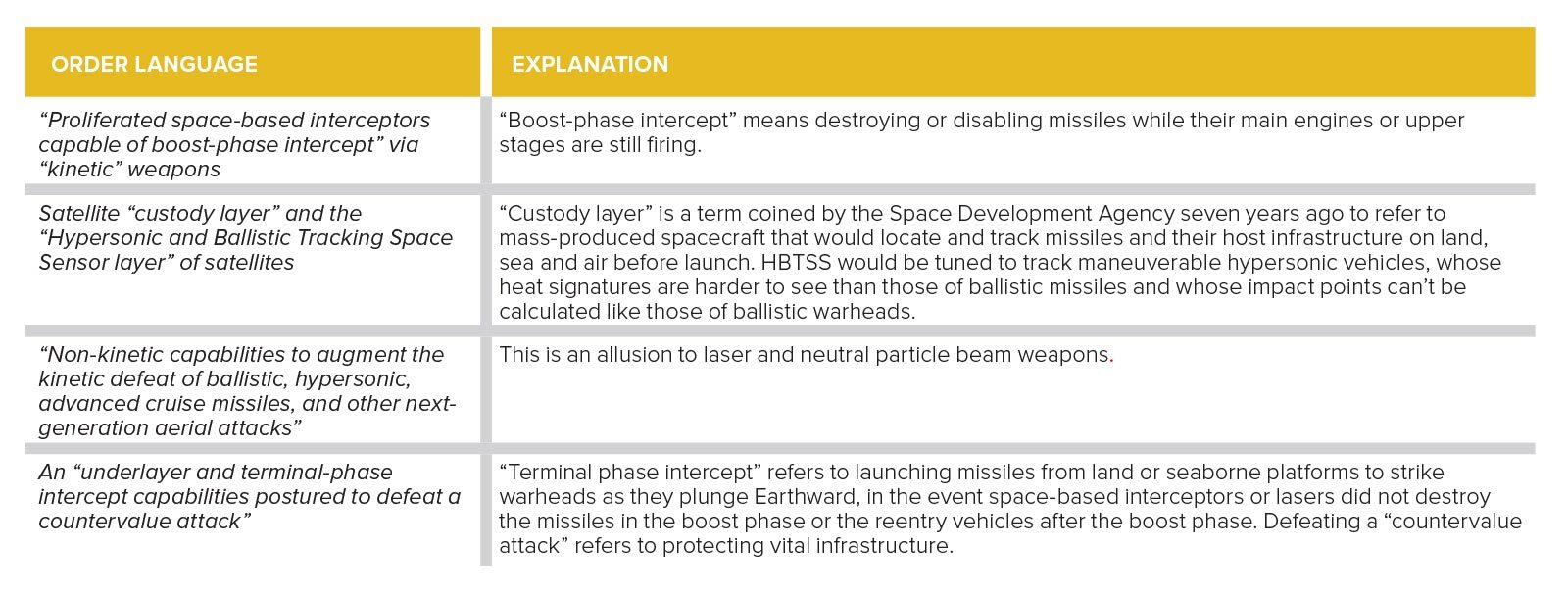 Why is the Defense Department so confident that the industry can deliver what’s needed, if we’ve only launched a couple handfuls of our own birds to date? The answer boils down to the almost 650 OneWeb and 7,000 Starlink satellites orbiting overhead. Those show that mass-produced, relatively small spacecraft are both feasible and practical. What may not be as clear is how this lesson in mass-production and micro-miniaturization of electronics can be applied to space-based interceptors.