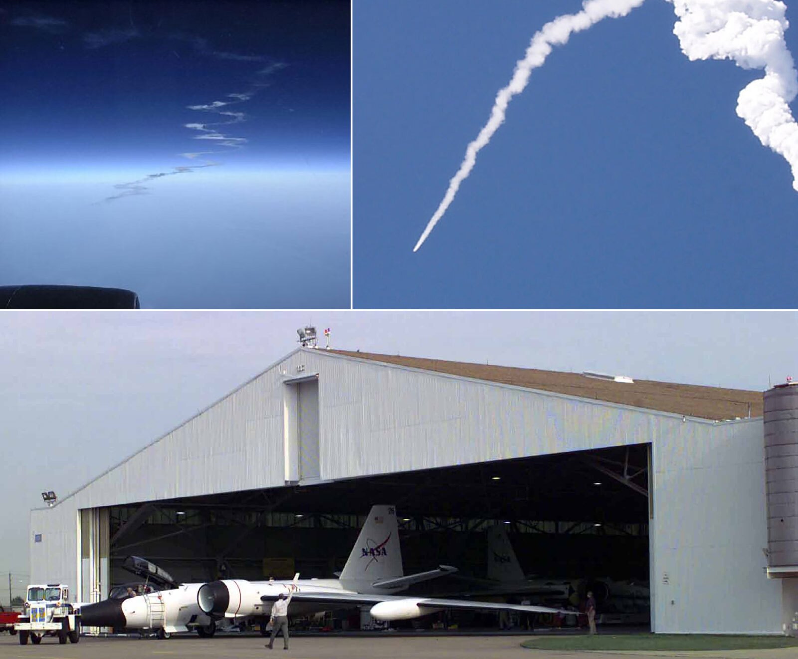 Prior to each launch, two NASA pilots ascended to about 50,000 feet in a WB-57 aircraft, loitering about 80 kilometers from the launch pad. About five minutes after confirmation of liftoff, they made multiple passes through the white rocket plume, the hollow tube-shaped probes on the plane’s nose gathering samples. About a dozen passes were made through the plumes over a two-hour span after launch to measure how emissions including the black carbon particles dispersed in the stratosphere over time. The ACCENT program gathered emission samples from the plumes of five rocket designs: The Delta II, Atlas II, Athena, Titan IV and the space shuttle orbiters.