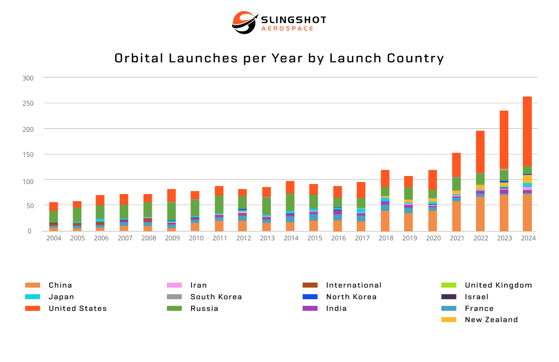 Fig. 2 Orbital Launches Per Year by Launch Country, Slingshot Aerospace