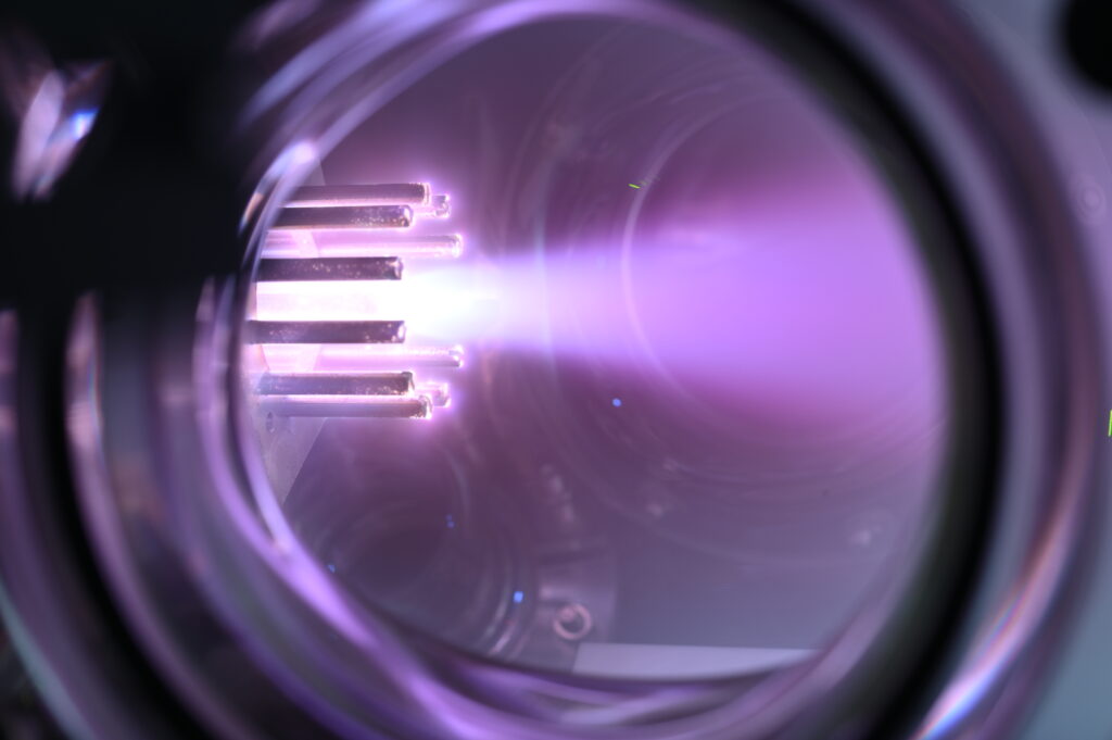 As Underwood started his faculty career, these threads converged into air-breathing electric propulsion. This concept reimagines the constraints of traditional electric propulsion. Instead of storing propellant onboard, the vehicle harvests atmospheric particles at very low Earth orbit altitudes where atmospheric drag is significant. The challenges are substantial. Can a plasma be sustained at those pressures? Can sufficient propellant be harvested to compensate for drag? How do electric propulsion systems operate efficiently on reactive species such as atomic oxygen and nitrogen? These questions pushed his research into new regimes of plasma physics and system design that would be self-replenishing.