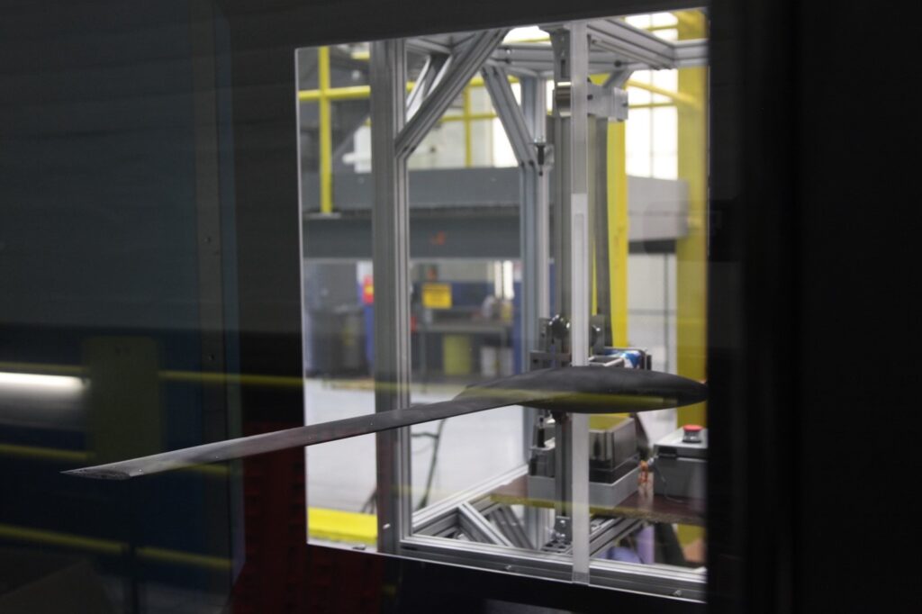 In March, the U.S. Air Force Research Laboratory in Dayton, Ohio, assembled and tested a new pitch-plunge wind tunnel mount. The new apparatus, which enables a model to move freely in the tunnel and respond to structural and aerodynamic loads as if it were in flight, was tested in the Parker Subsonic Research Facility wind tunnel at Wright-Patterson Air Force Base in Ohio. This tunnel has the capability to measure complex structural and fluid dynamics to study aeroelastic interactions of scaled flight vehicles. For the first test campaign, a half-span model of the X-56 aeroelastic testbed was designed and 3D printed to behave with scaled structural and aerodynamic similarity to the full-scale flight vehicle. A controller to “fly” the vehicle in the tunnel was also developed.