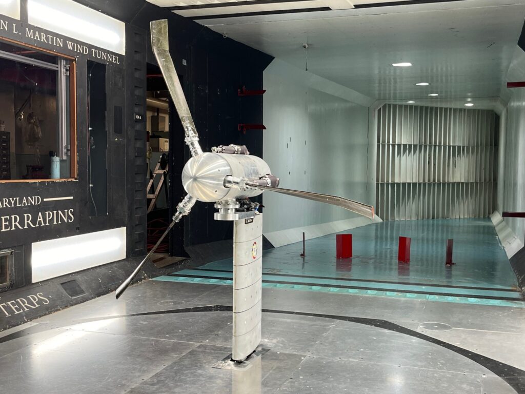 In May, a dynamically scaled 1.45-meter-diameter hingeless hub proprotor was tested in the University of Maryland’s Glenn Martin wind tunnel at speeds up to 100 meters per second—equivalent to 230 m/s full scale—proving the feasibility of high-speed tiltrotors free from whirl flutter. Current tiltrotors with gimballed hubs are susceptible to whirl flutter aeroelastic instabilities, which may lead to system failure after a critical speed. Hingeless hubs can enable safer electric vertical take-off and landing aircraft and larger turboprops that are runway independent.