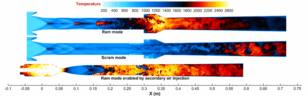 In April, researchers at North Carolina State University and the University of Illinois Urbana-Champaign studied high-altitude scramjet operation. With LES, they investigated scram-mode operation of an ethylene-fueled isolator/combustor configuration. The role of secondary oxidizer addition in enabling stable ram-mode combustion without a cavity flameholder was identified through simulations that captured transient wall heating and the presence of radical species in the inflow.